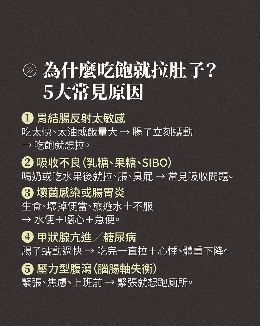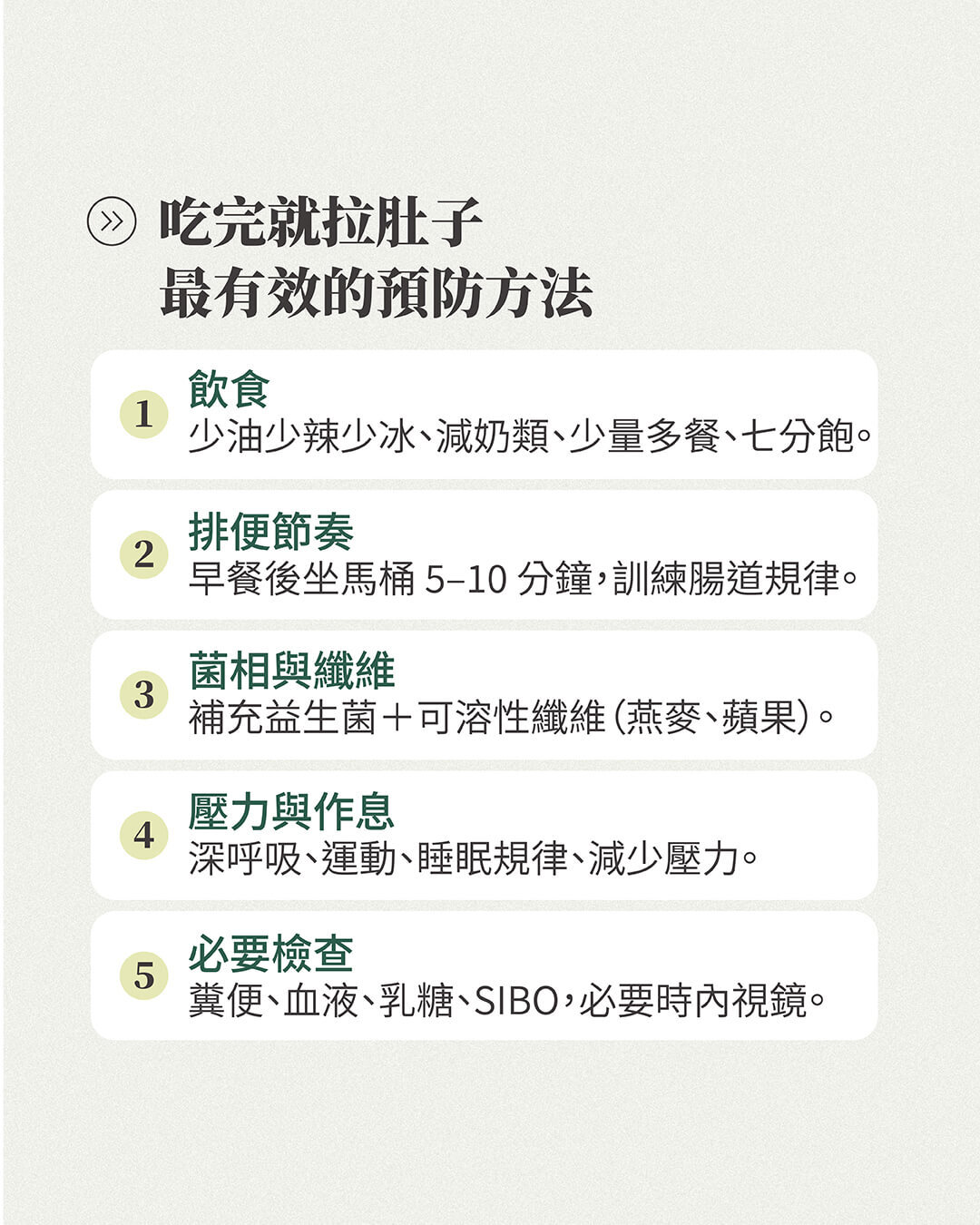 📌 若常在壓力情況下拉肚子,且反覆超過 3 個月,需注意 IBS(腸躁症)可能性。