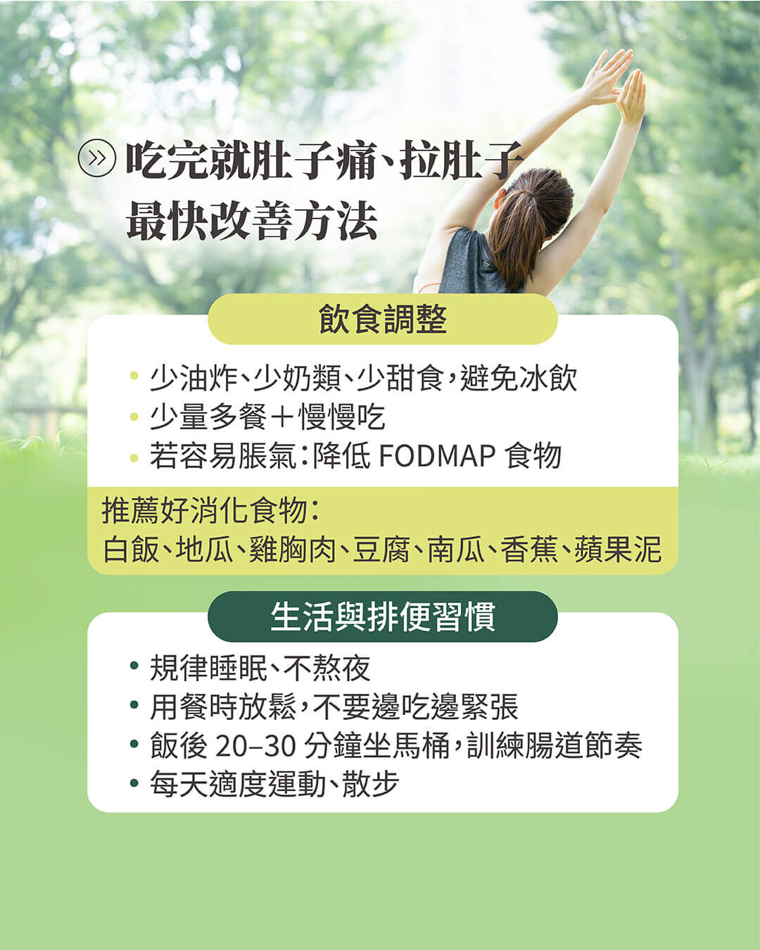 通常排便後症狀就會明顯改善,屬於常見的功能性腸胃反應。
