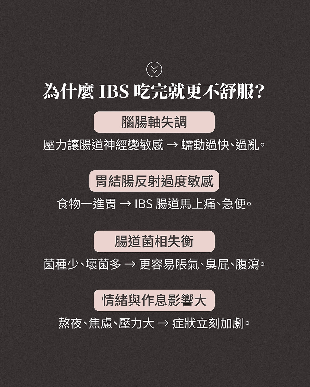 📌 IBS 屬於功能性腸道疾病,雖無器質性病變,但非常影響生活,不是忍一忍就好。