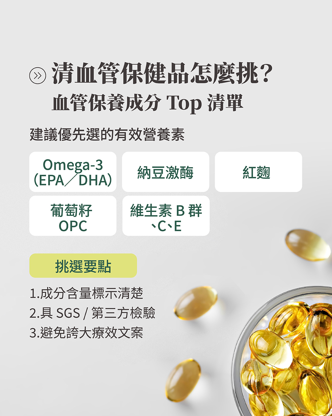 選擇「清血管保健食品」時,可優先考慮以下成分: