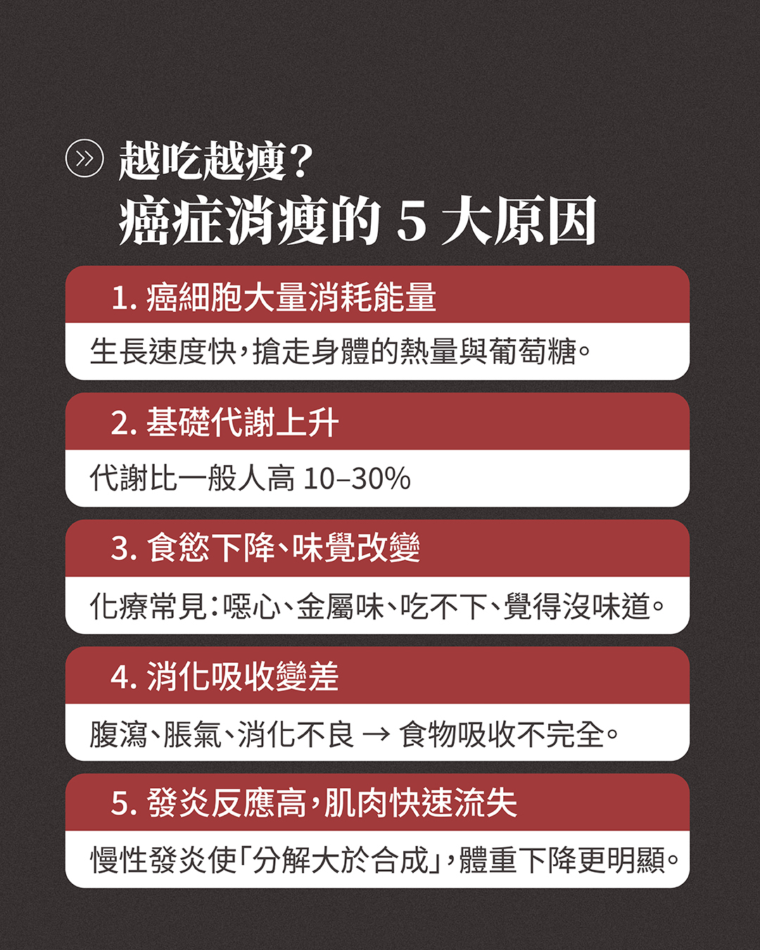 而患者也常查詢:「為什麼癌症會變瘦?」