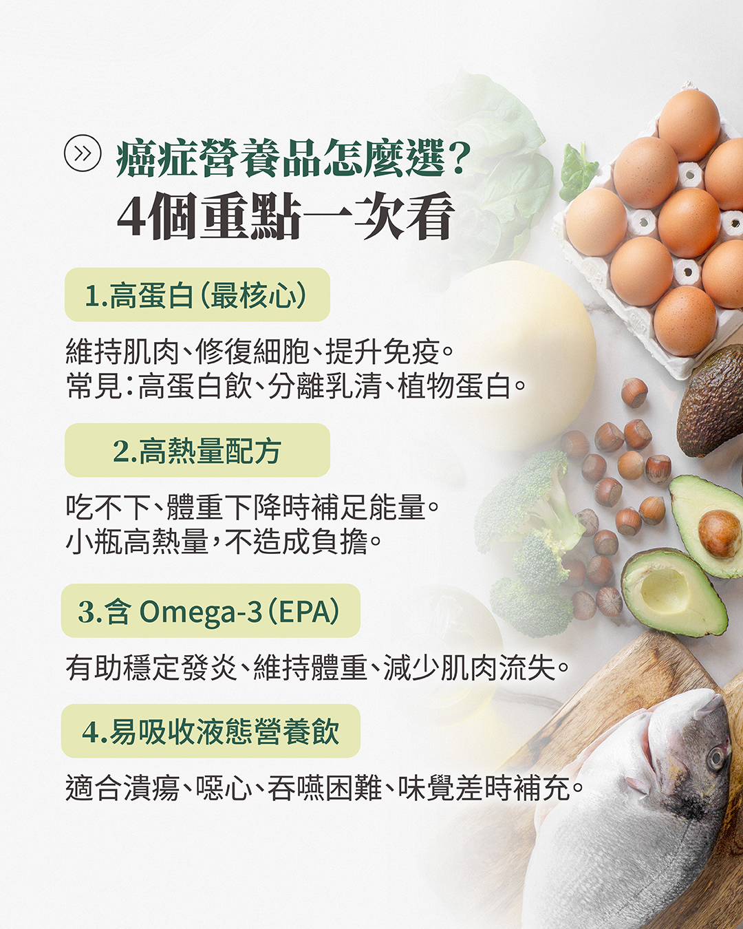 治療期間,營養品不是可有可無的補充,而是用來彌補吃不夠時的重要支持。