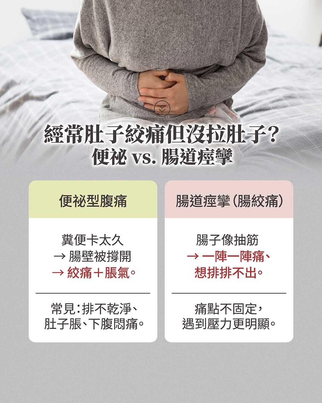 很多人會搜尋「肚子絞痛沒拉肚子」、「肚子絞痛大不出來」其實就是腸道痙攣造成。