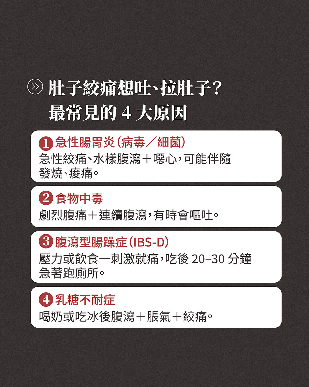 肚子絞痛並非單一疾病,而是多種腸胃問題的「共同表現」。
