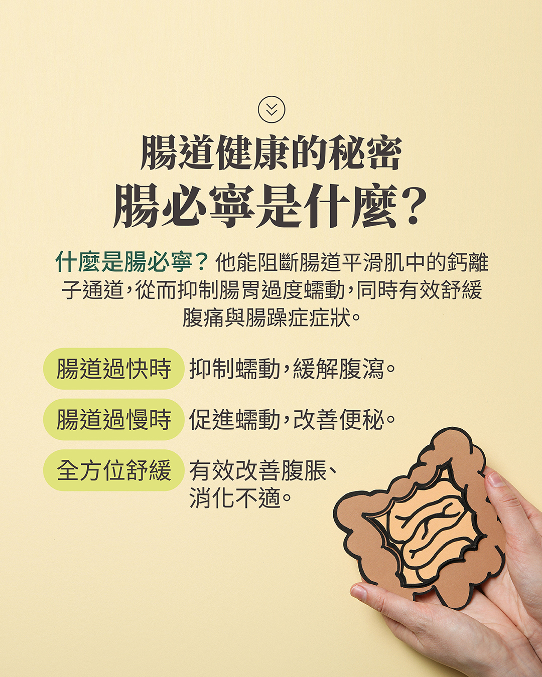 透過正確的服用方式,腸必寧錠可以在短時間內提供明顯的緩解效果,是調節腸道健康的理想選擇。