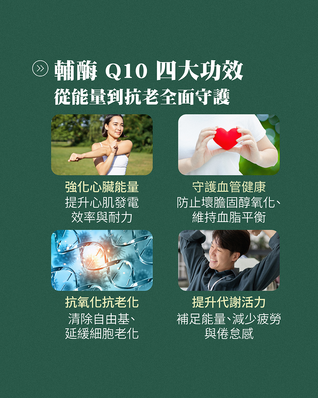 一般保養族群:搭配均衡飲食與低劑量 Q10 維持體力與抗氧化力。