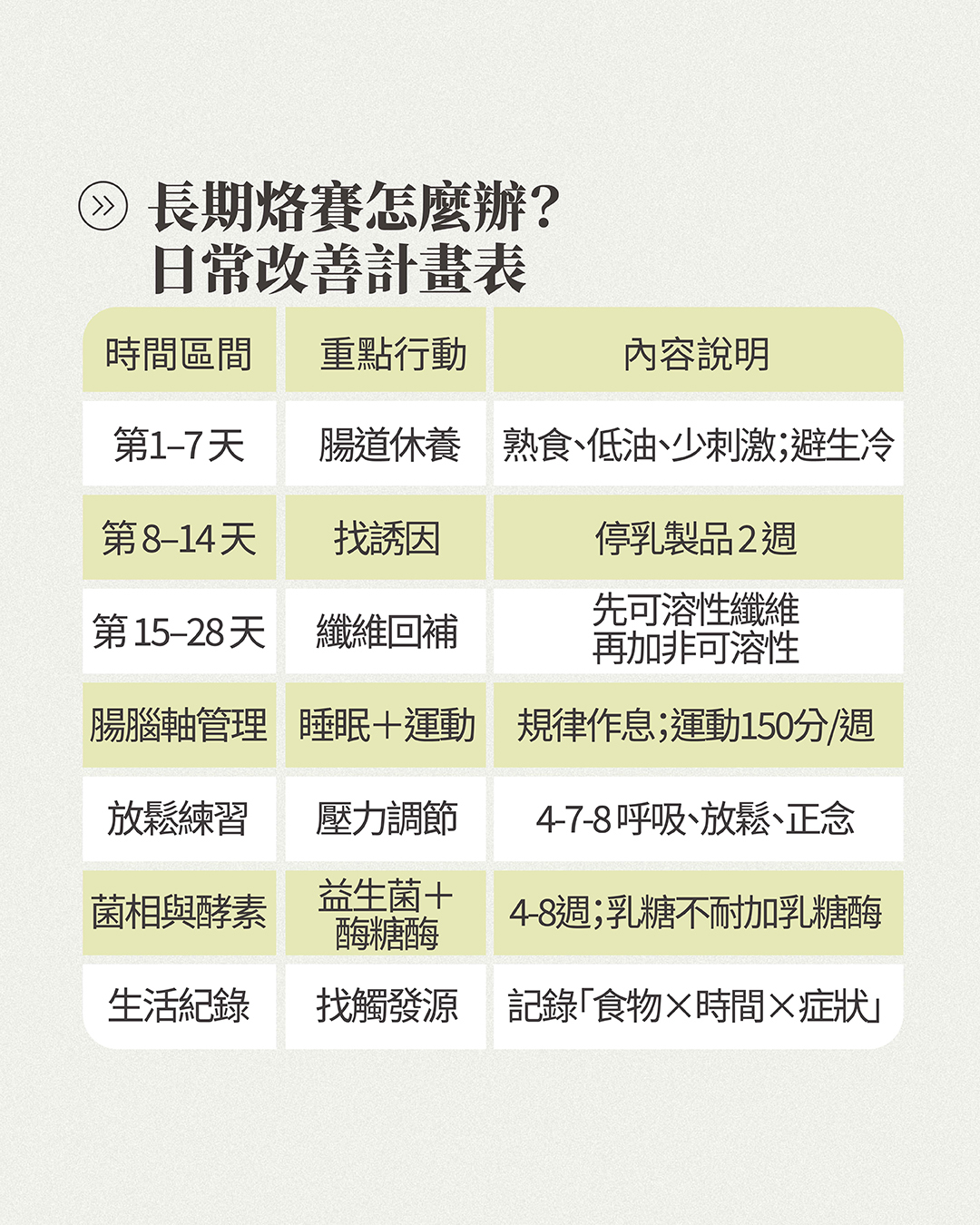 四、長期烙賽怎麼辦?從日常調整開始(7–28 天計畫)