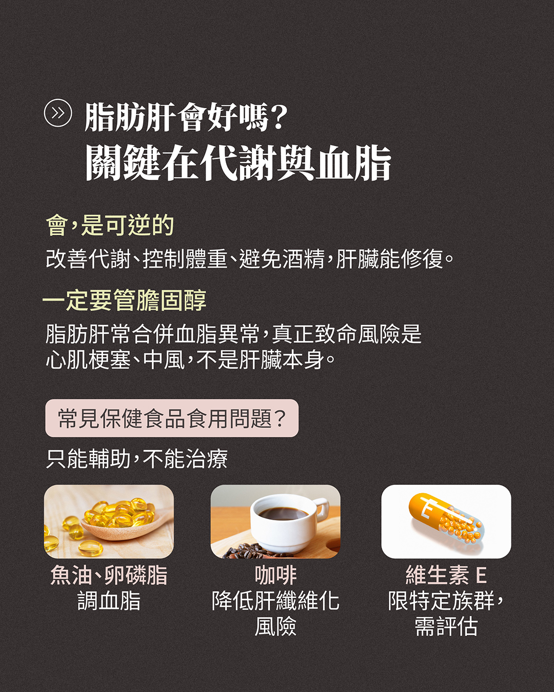 這也是為什麼,單靠「脂肪肝的藥」,無法真正解決脂肪肝問題;唯有從生活型態與代謝根本著手,才能有效降低疾病惡化風險。