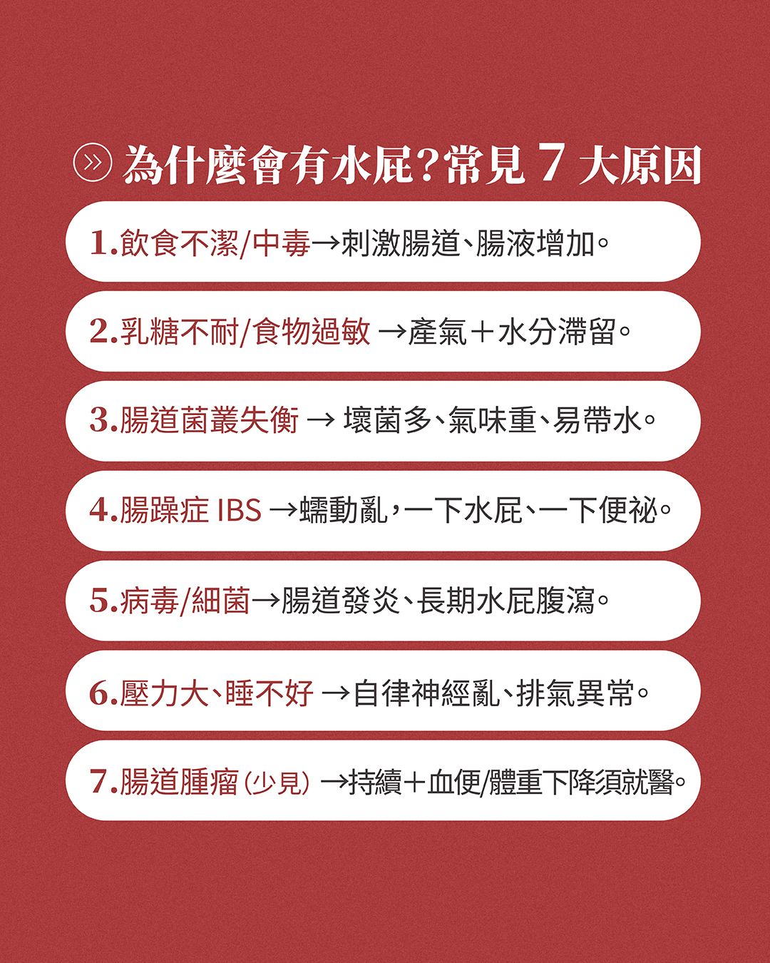 ▸ 水屁成因對照表(短期 vs 慢性原因)