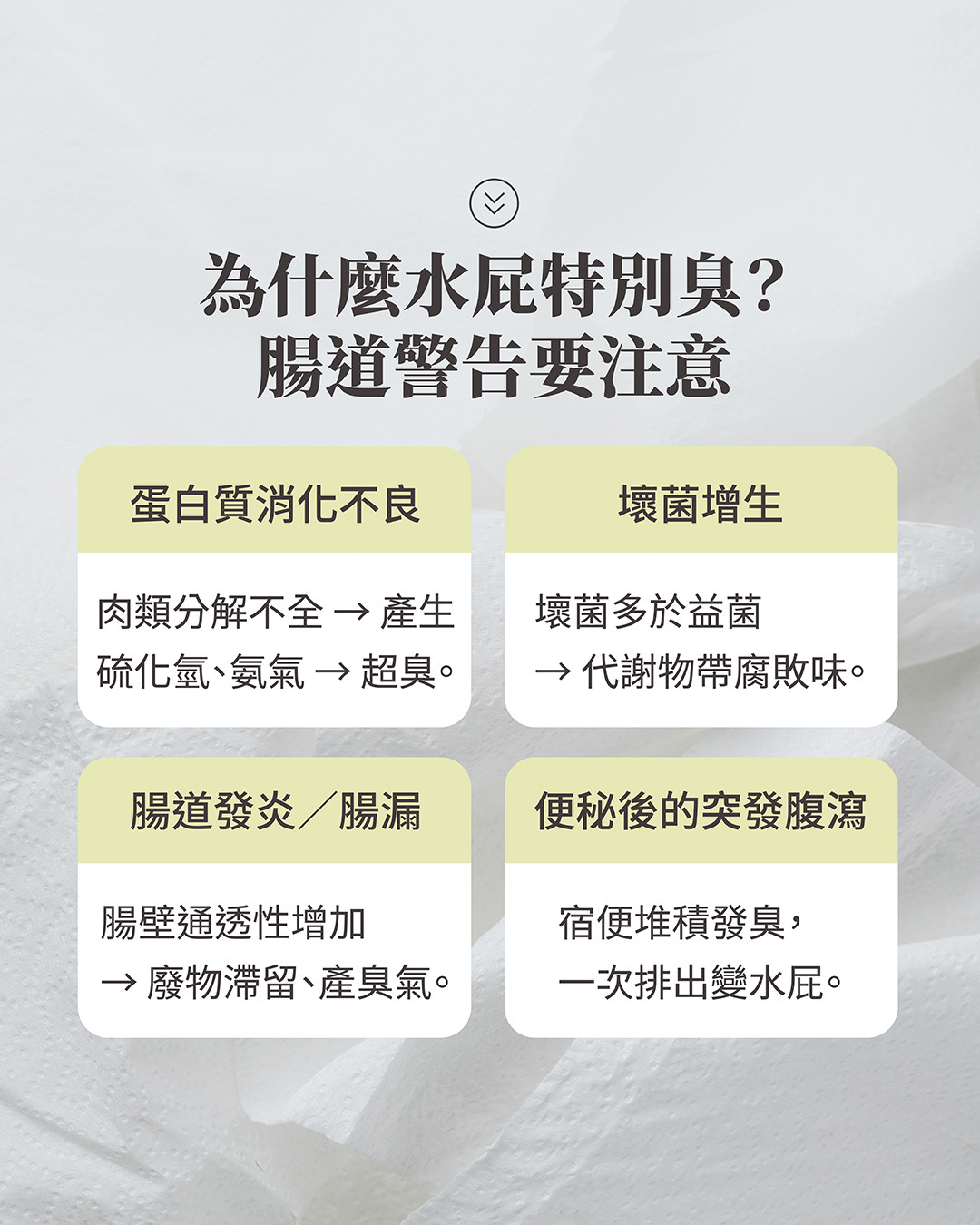 導致「經常水屁」的原因多半與腸胃環境、飲食習慣、壓力甚至腸道疾病有關。以下是最常見的幾個主因: