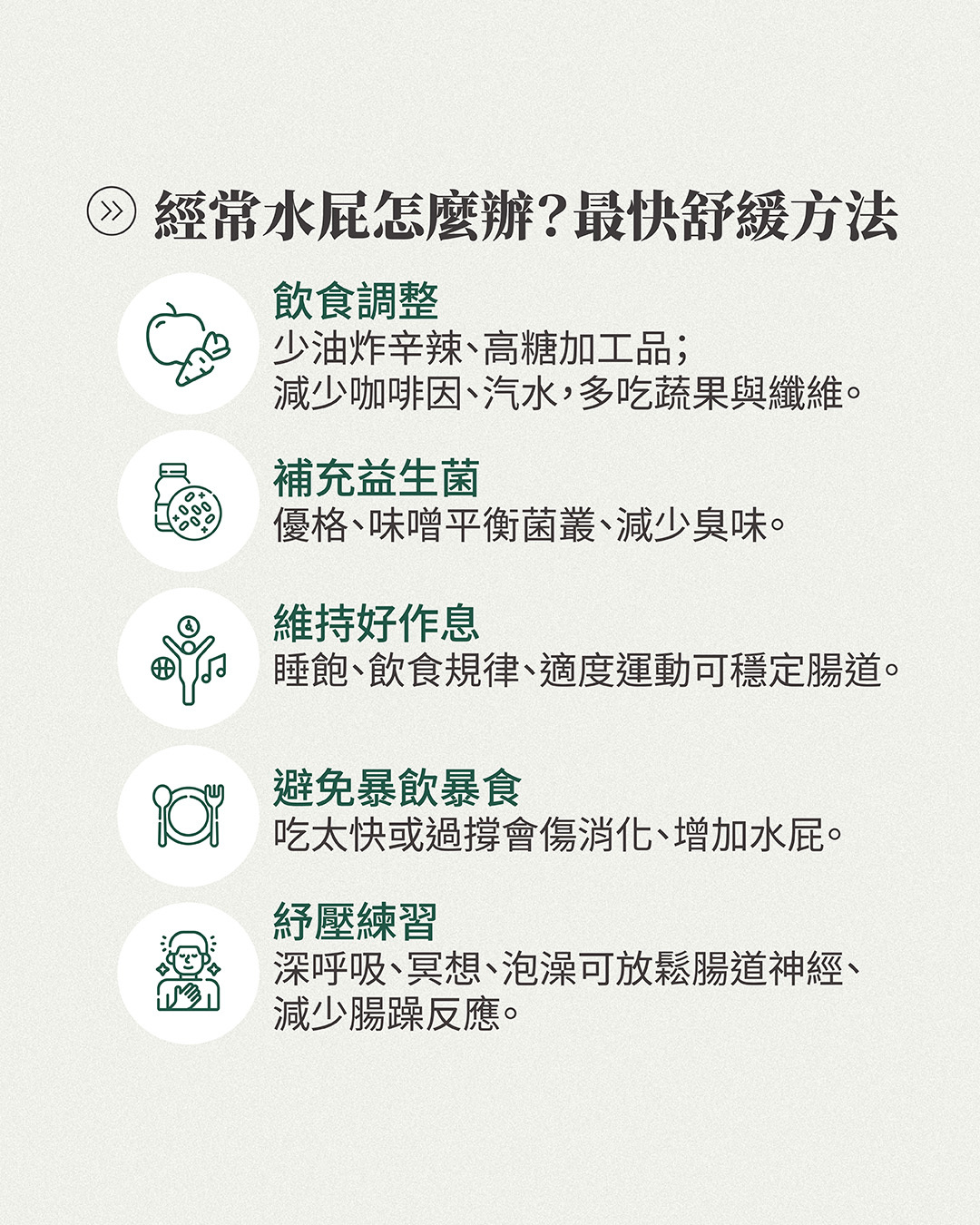 ▸ 改善腸躁症型水屁的生活調整建議