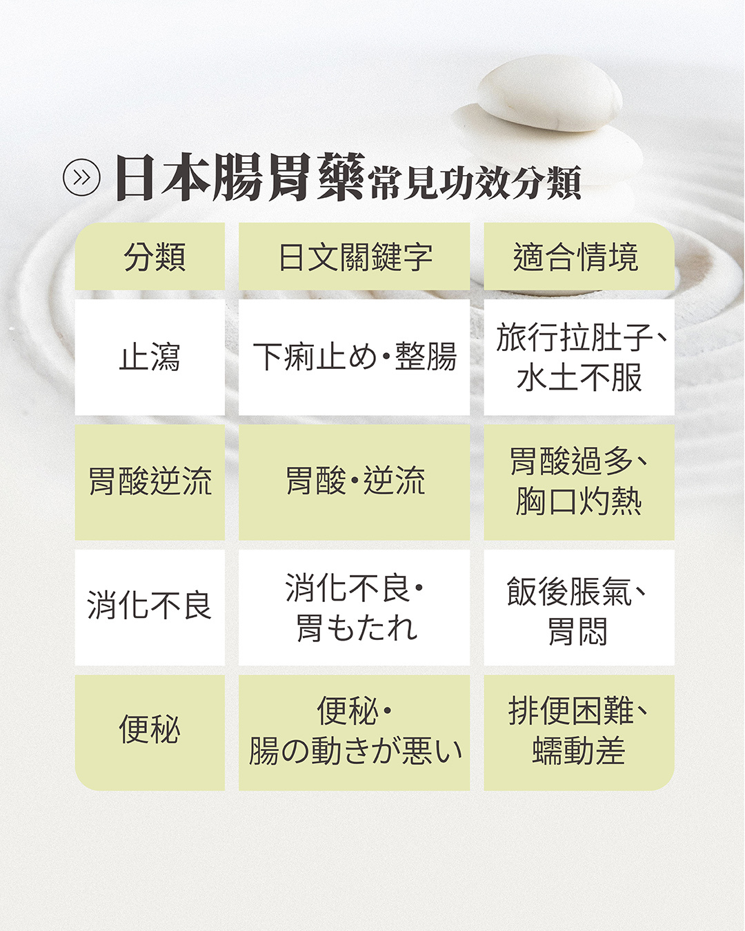 到日本藥妝店買藥時,最怕的就是看不懂包裝上的日文。其實常見的日本腸胃藥大致可以分為四大類,只要掌握功效與日文對照,就不會買錯。