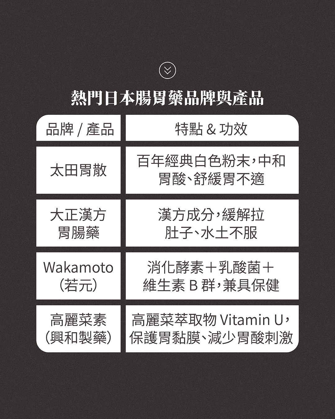 到日本旅遊時,逛藥妝店已經成為固定行程,而在琳瑯滿目的商品裡,日本腸胃藥長年穩居熱門排行。除了因為日本人日常飲食油炸、重口味比例高,容易造成胃酸逆流、脹氣、便秘等腸胃不適之外,這些藥品還結合了西藥與漢方的特點,針對不同症狀都有對應的選擇。再加上品牌歷史悠久、口碑良好,不只日本人自己常備,連觀光客也會特別到藥妝店掃貨。這也是為什麼「去日本一定要買腸胃藥」成了許多人的共識
