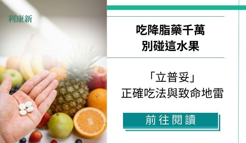 飲食地雷: 葡萄柚汁(Grapefruit juice)是腸道酵素 CYP3A4 的抑制劑,與立普妥共服會導致藥物濃度過高,增加毒性風險。