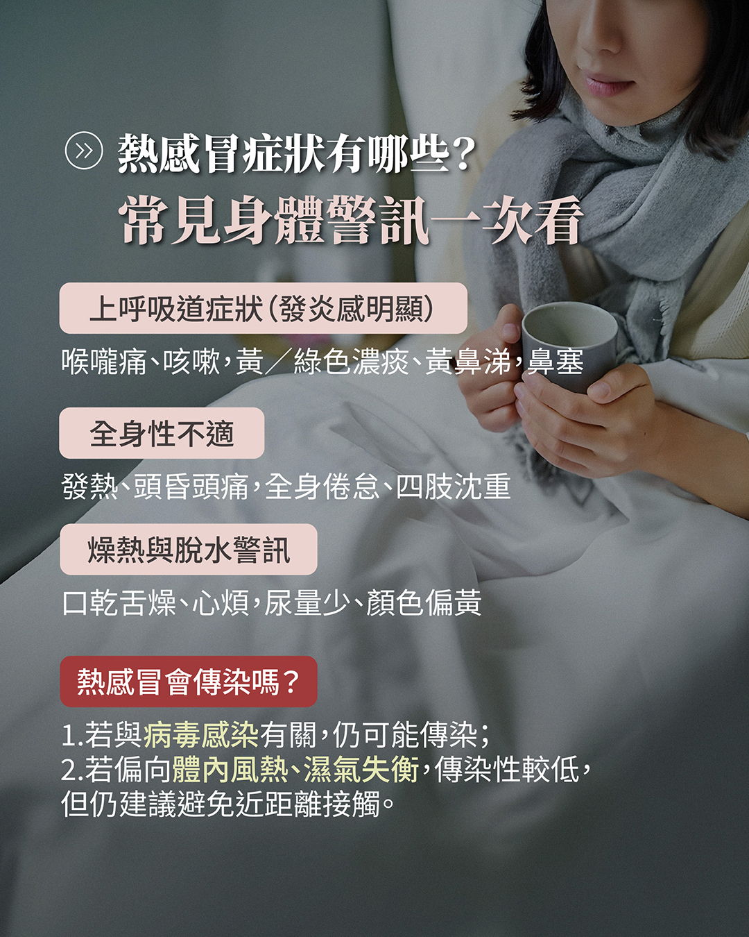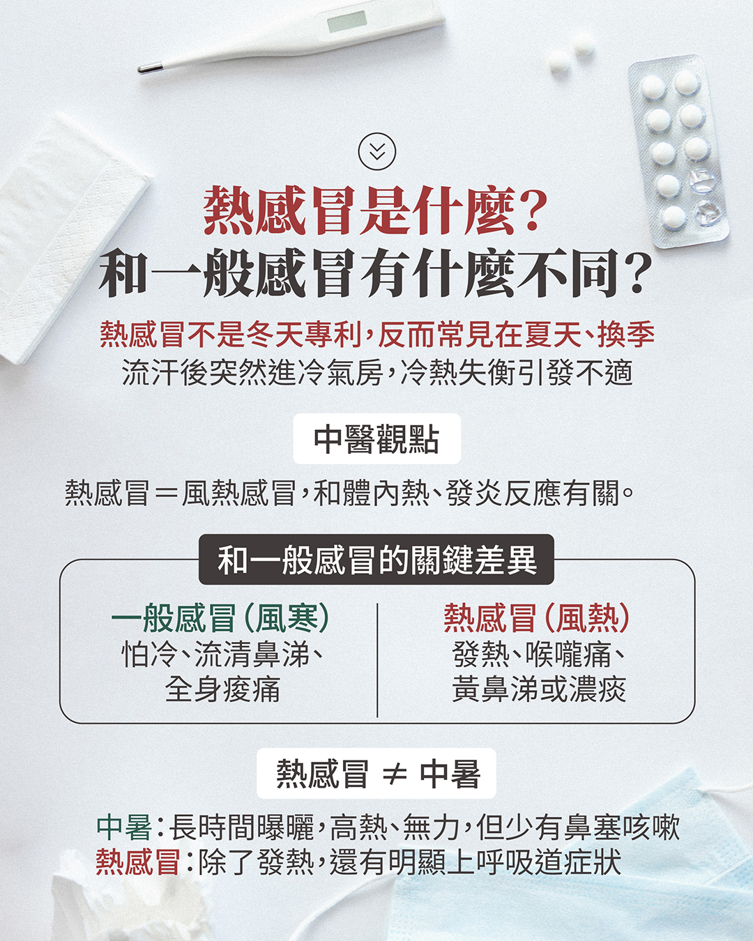 在中醫觀點中,熱感冒也常被歸類為「風熱感冒」,與體內熱、濕氣累積與免疫狀態密切相關。