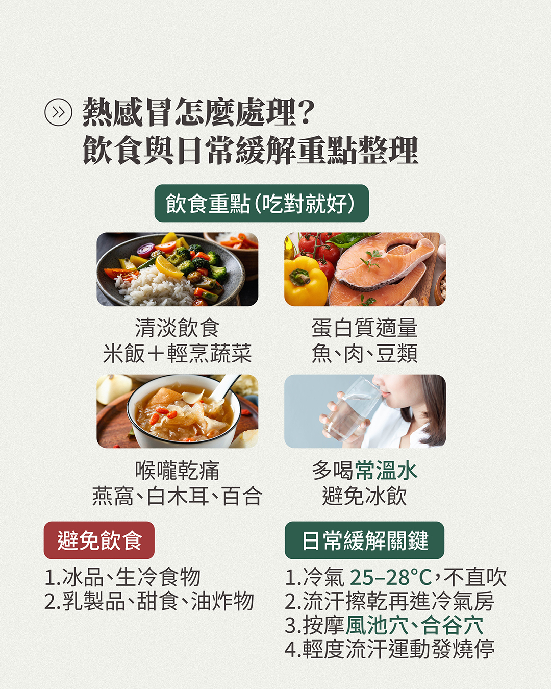 當出現熱感冒時,處理原則不在於「退得快」,而是幫助身體散熱、恢復平衡。