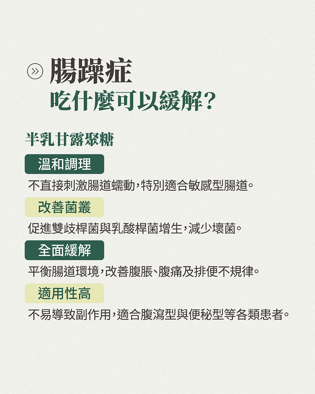 平衡腸道菌群,緩解腹瀉或便秘型症狀。