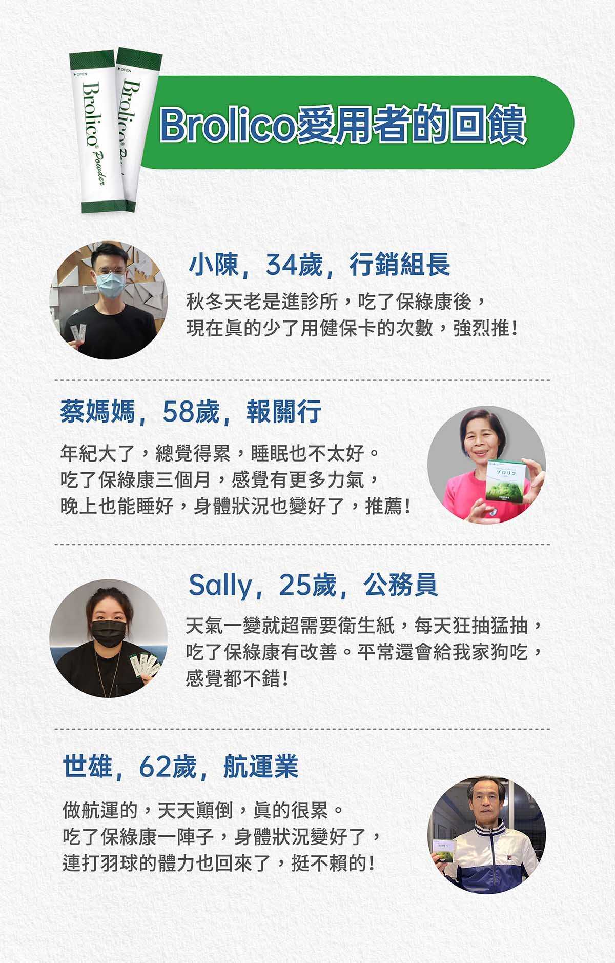 A:3歲以下兒童、孕婦等我們建議與醫師討論好再食用保綠康。如果您有個別健康問題,歡迎來電諮詢我們的營養師。