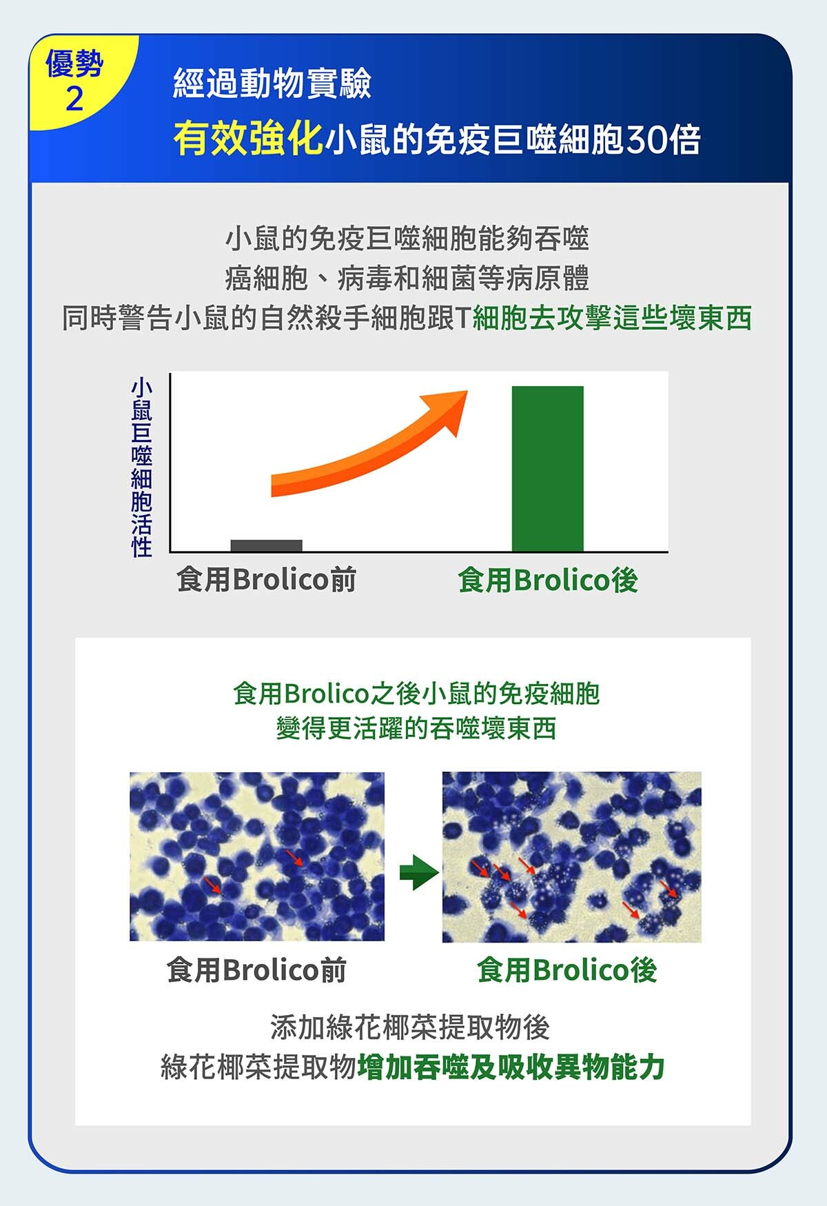 2.保綠康綠花椰菜營養素也經過人體實驗,經雙盲實驗,食用保綠康4周後抽血分析,發現人體的保護系統活躍度提升了15%