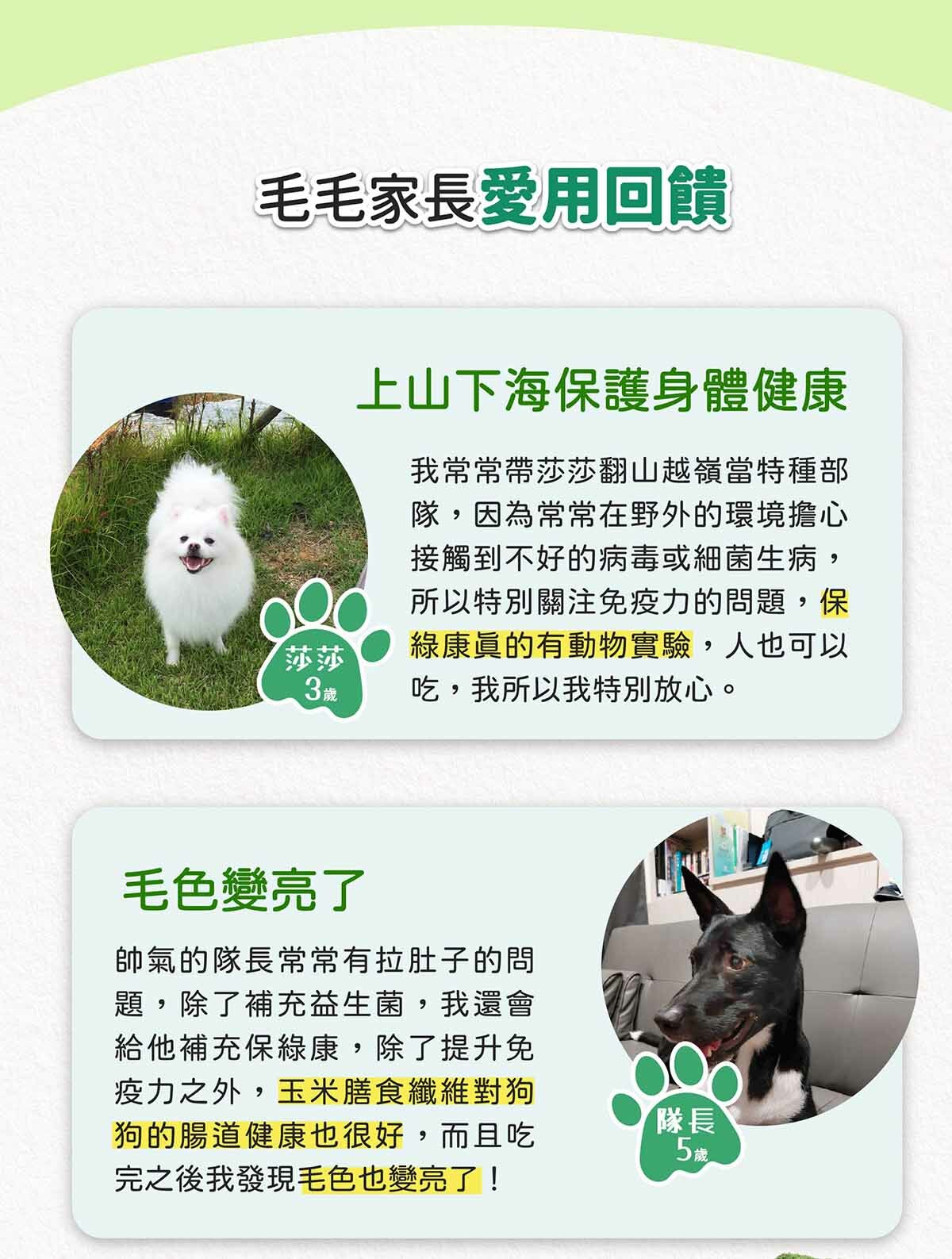Q: 保綠康本來不是人在吃的嗎?為什麼毛孩也可以吃?