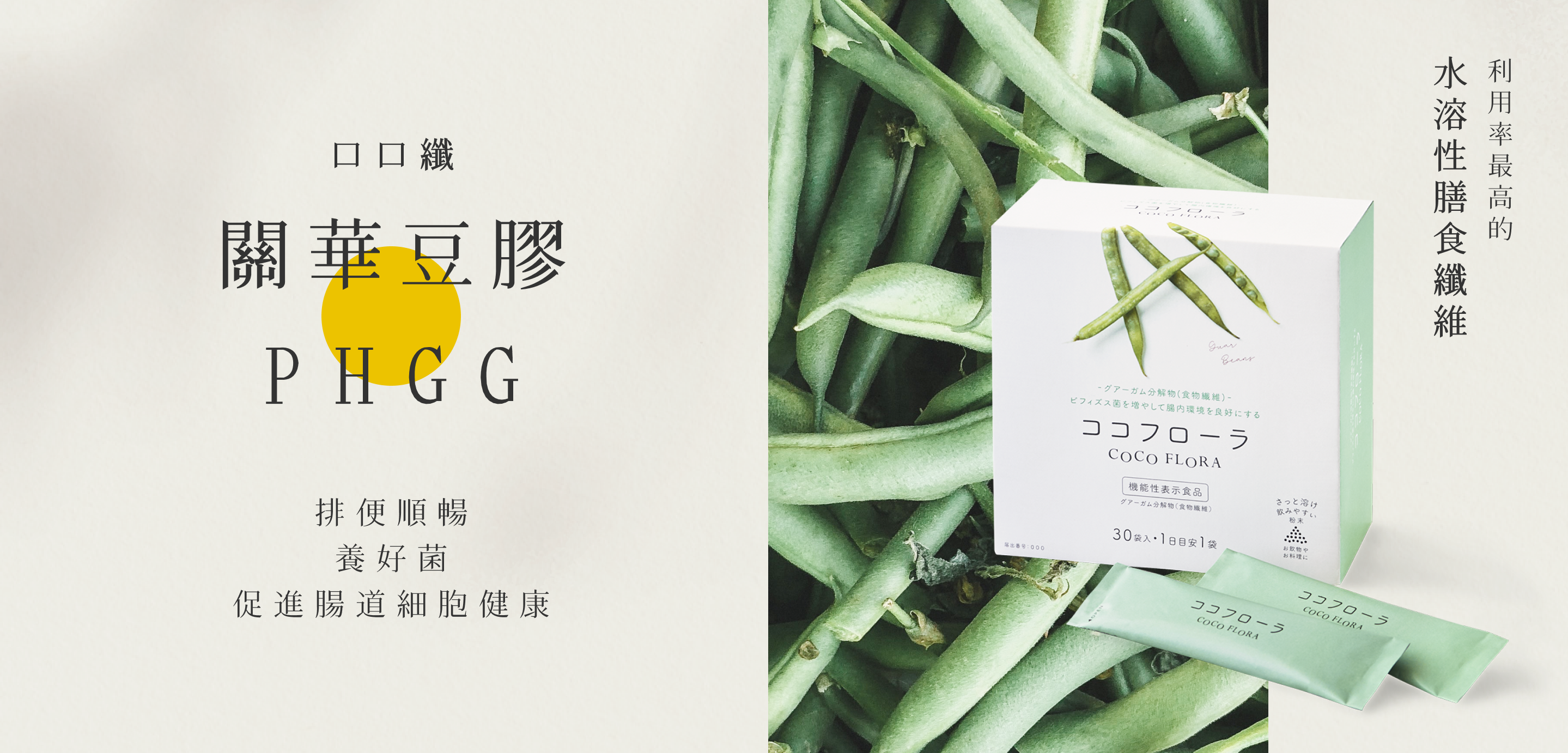 半水解關華豆膠纖維是非常好的益生元,能夠有效的促進腸道健康,我除了自己日常食用,我在自己東京的診所我也在販售。希望我監製的COCO FLORA能幫助台灣的朋友透過改善腸道健康,享受生活。