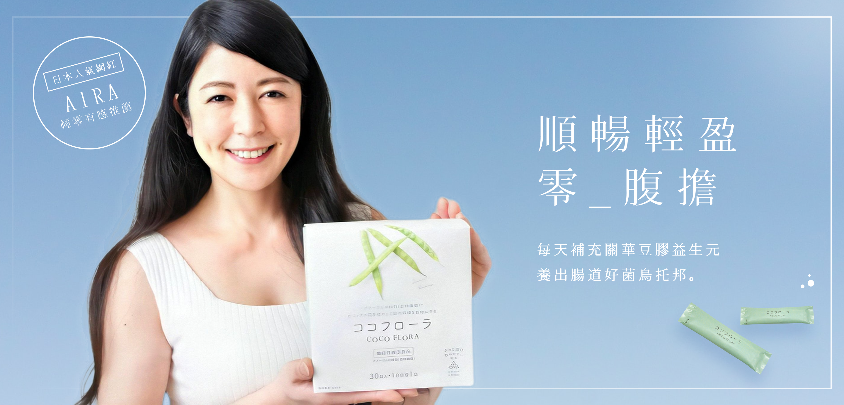 日本網紅心得:"COCO FLORA很好攜帶也方便溶解,我現在每天都會加在優格裡面一起吃,補充益生元,改善排便困擾很有感覺!"