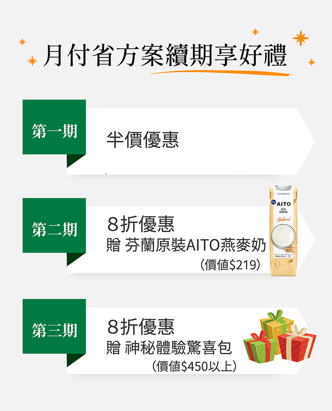 此方案為每月配送,第二盒起享7折優惠,再享多重好禮
