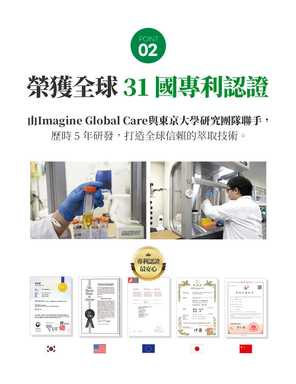 🟡 31 國專利認證:與東京大學聯手研發,全球信賴的專利技術