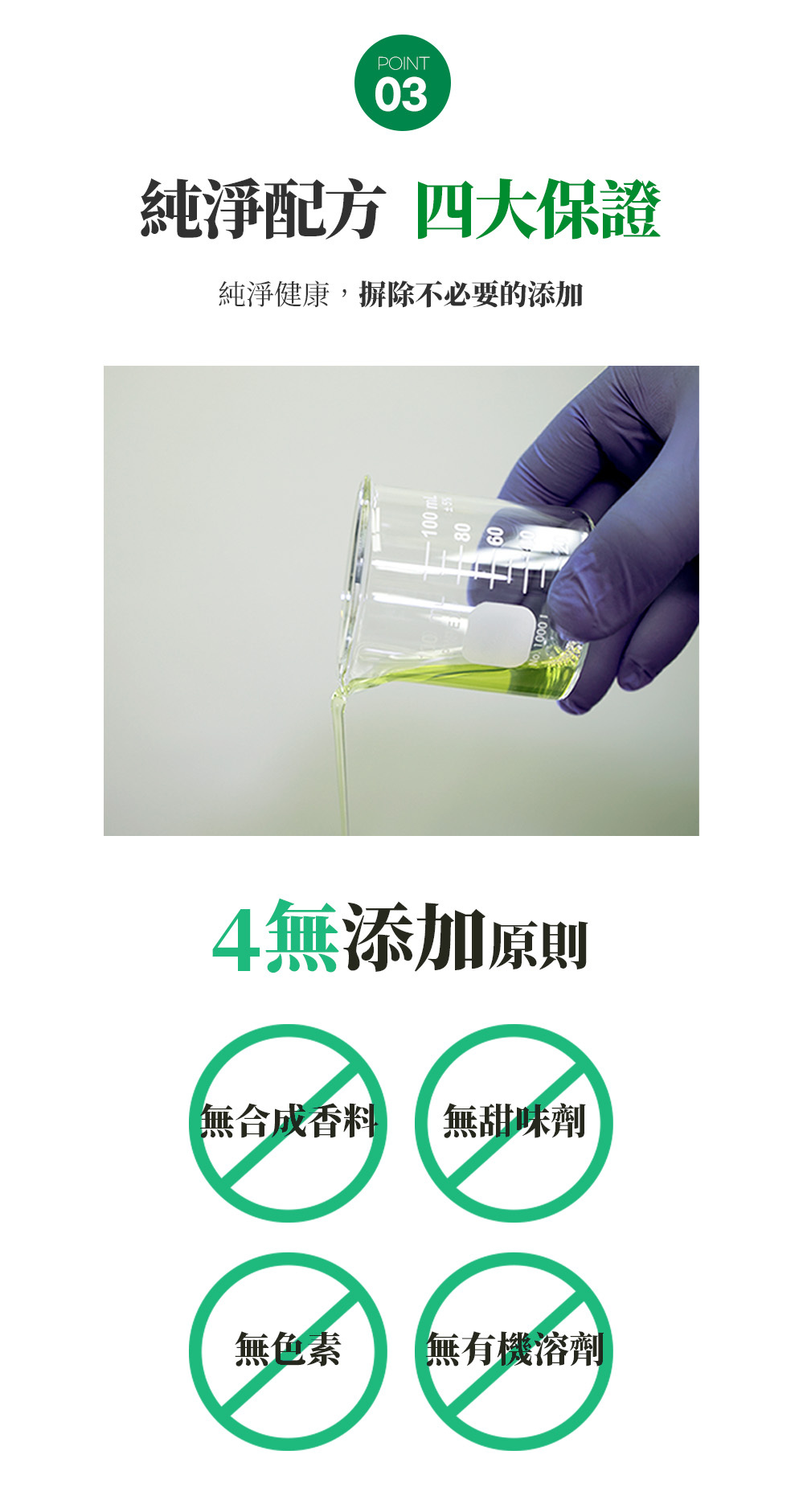 🟡 純淨配方:無香料、無甜味劑、無色素、無有機溶劑