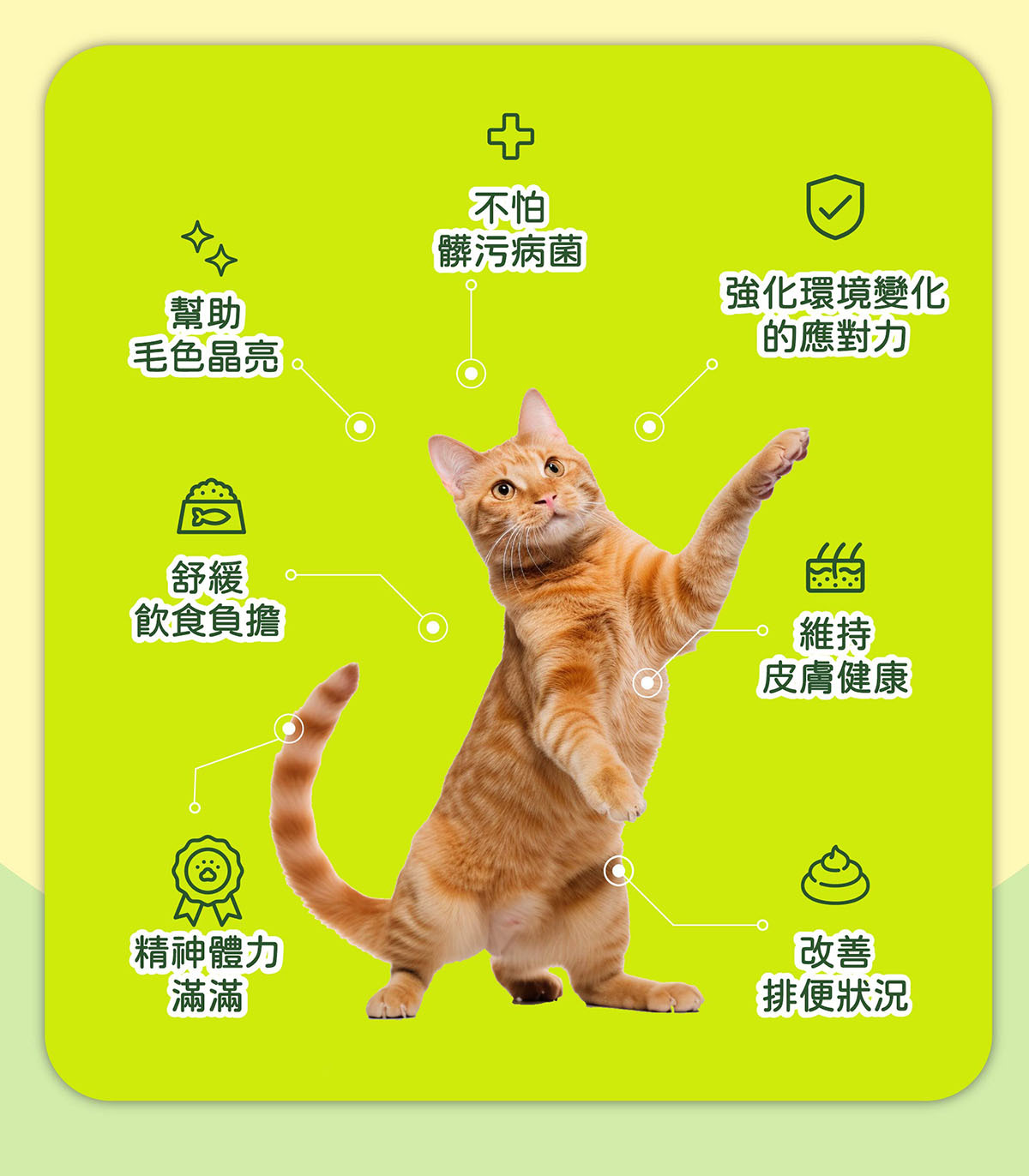 🧑🔬 腸道愛護:添加玉米來源的水溶性膳食纖維,可促進腸道蠕動、使排便順暢,也能夠幫助毛小孩排出理毛後的脫落毛髮、深層養護體內環境、還能守護健康生理機能。